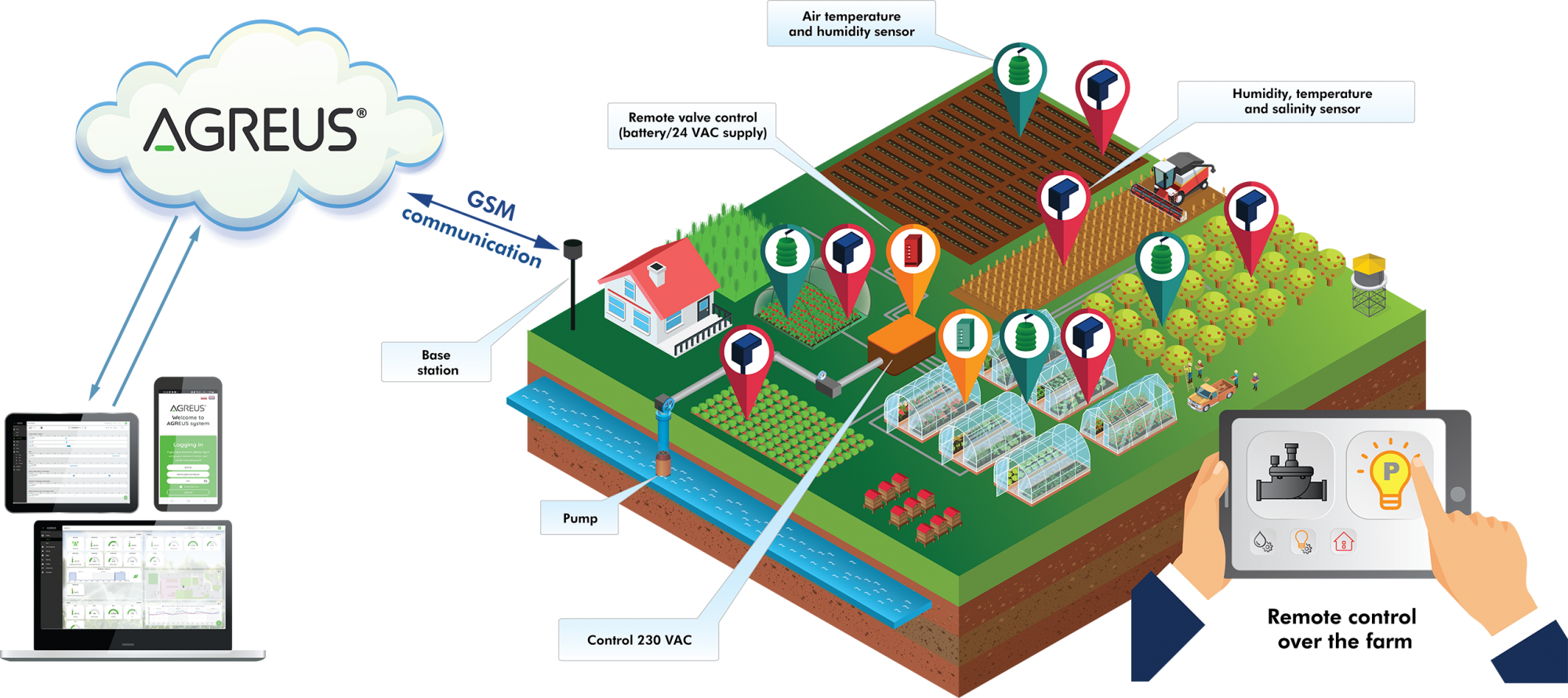 System – Agreus – wireless measurement and control for agriculture, orchards, gardens, and green areas